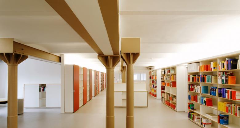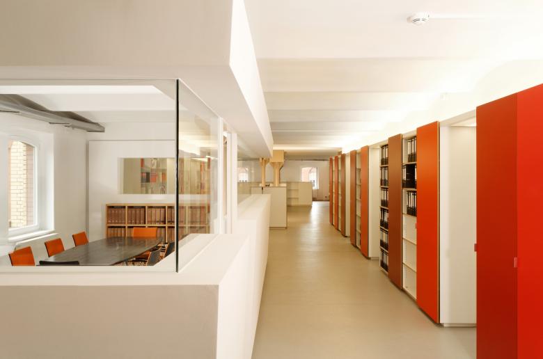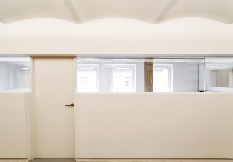 The task: new rooms for a law firm in a historic industrial building. The location: the law firm JBB rented a floor in Pfefferberg’s historic brewery site. The Pfefferberg, originally the brewery by the Bavarian brewmaster Joseph Pfeffer, is an area full of history: during the GDR era, it was here that the SED newspaper “New Germany” was printed. Since around 2001, a mixed district with studios, galleries, private museums and gastronomy has developed here. Neighbours include Olafur Eliasson and Sergei Tchoban’s Museum for Architectural Drawing. In 2006, we built the office in an elongated, circa 500-square-metre, gutted floor of the former brewery. The iron columns, which feature capitals, and the 19th-century beams are the only visible historic remnants in the space.
