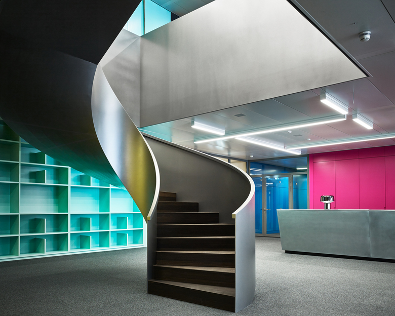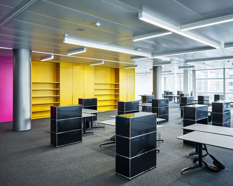Für diese grosse Bürofläche haben wir ein integriertes lineares Beleuchtungssystem entwickelt. Dieses System ermöglicht eine optimale Ausleuchtung der Arbeitsbereiche. Gleichzeitig reagiert es flexibel auf zukünftige Änderungen in der Raumaufteilung. Die Besprechungstische und Meeting-Rooms werden durch Pendelleuchten betont, welche sich in den Rhythmus der Grundbeleuchtung harmonisch eingliedern.