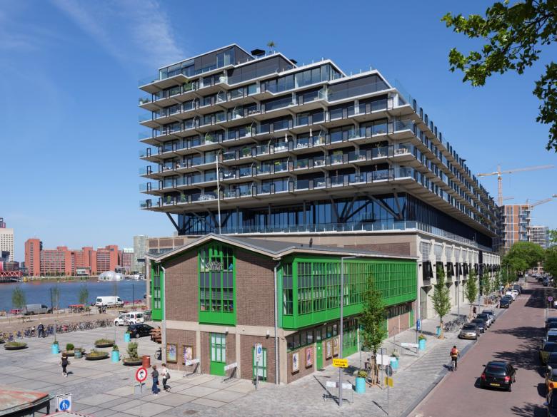 A mixed programme of housing, workspaces, car park and leisure is planned for the older lower levels. An ‘active plinth’ along the Rijnhavenkade waterfront and part of the Veerlaan side will be comprised of several enterprises active in the 3 C’s (culinary, creative, and cultural ventures). The Fenix Food Factory is one such venture that will move into this complex. To provide visitors with easy access to both sides of the old warehouse, a passageway will be created between the Veerlaan and Rijnhavenkade.
