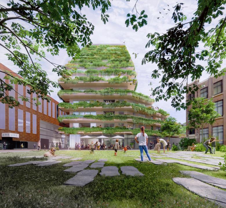 Commissioned by Nice Developers & Era Contour, Mei architects and planners is designing "SAWA": a unique wooden residential building in the heart of the Lloydquarter in Rotterdam. Exceptional to SAWA is that the building will be built entirely in CLT (cross-laminated timber) and is therefore the first fully wooden residential building of 50 meters high in Rotterdam. In addition, the building is distinguished by the generous green terraces, with which the building enhances the biodiversity of the neighborhood.