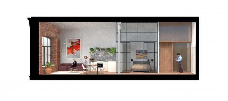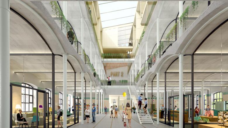 The approx. 200 new apartments in the transformed factory buildings will all be Loft-style. The huge existing windows – more than 4 meters high – create a unique spacious and light loft feeling and will provide the apartments with great views around. Mei architects and planners is expert in transforming monumental buildings into residential lofts, with famous examples as Jobsveem Warehouse in Rotterdam and the Gouda Cheese Warehouse.