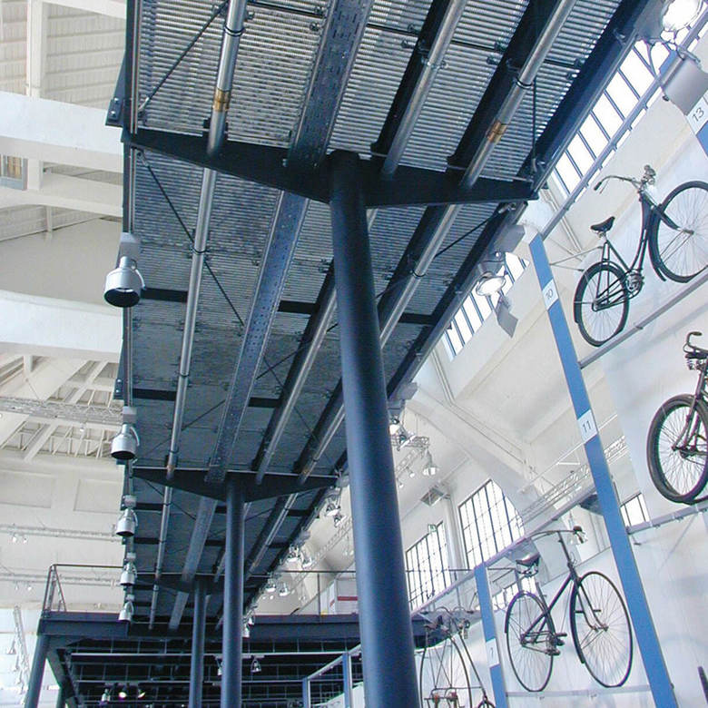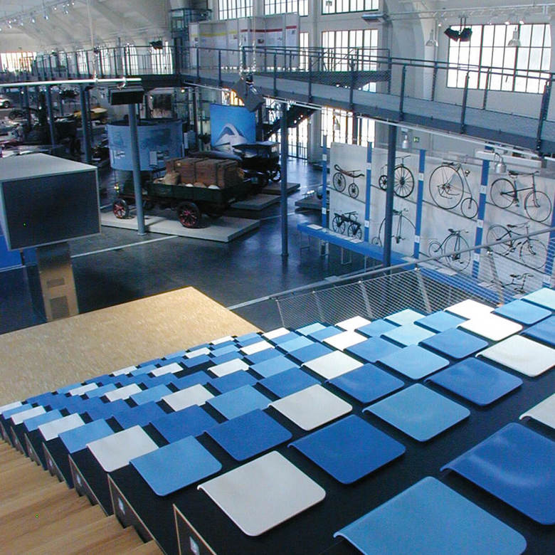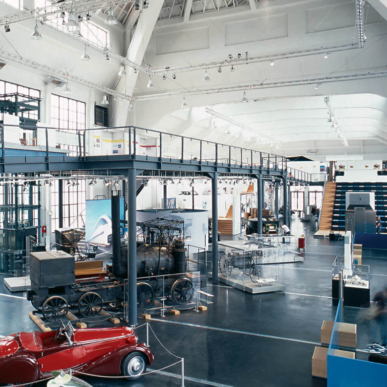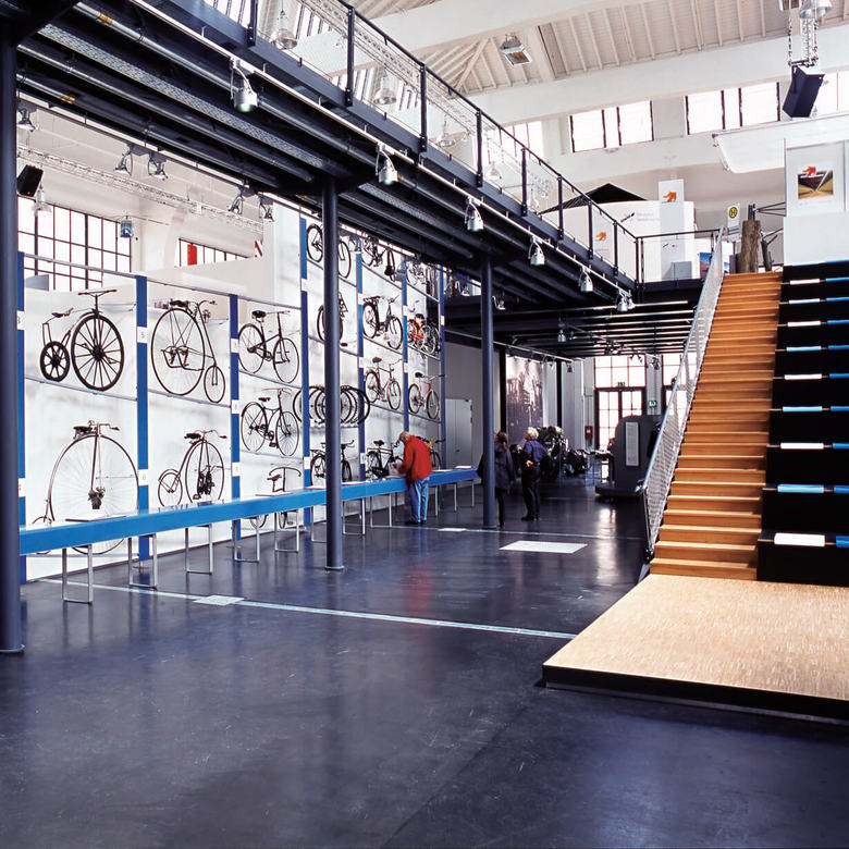 Hall 3 “Mobility and technology“ – The worldwide known ’Deutsches Museum Munich’ has expanded and moved into the listed halls of the old fair. For the design of the exhibition, a parcour was developed on two levels, generously opening up the hall and informing the visitors about the history of mobility, from footprint to racecar on different intellectual levels. The technical impression of the built-in components emphasizes the exhibits and mechanics which are constantly behind the impulse to be faster.