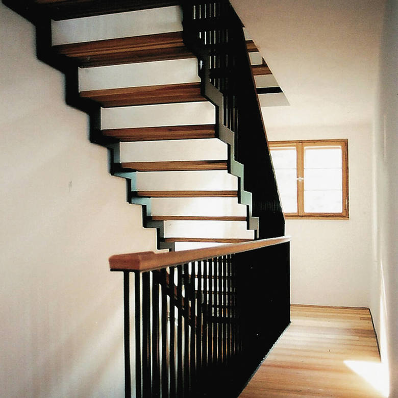 The priority was a sensitive handling of the historically precious built volume as well as artistic measures. The material for the windows, doors, floors and stairs is consistently larch wood. Black and white give a peaceful atmosphere to the interior. Clear and simple details function in their simplicity. Therefore the facade prize in 2004 is even more enjoyable, which granted this building a quiet humbleness among all the listed buildings of Munich.