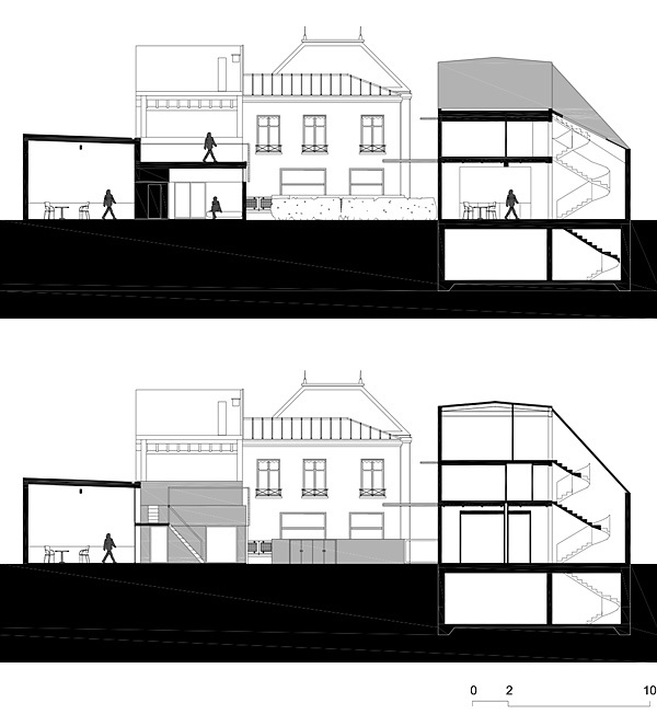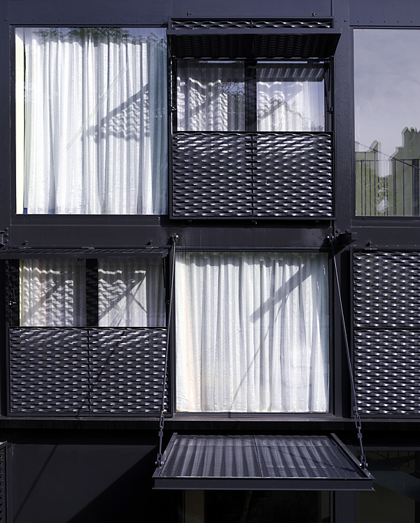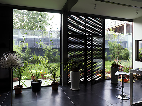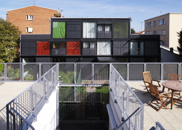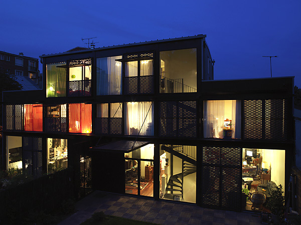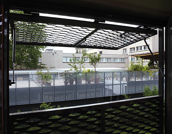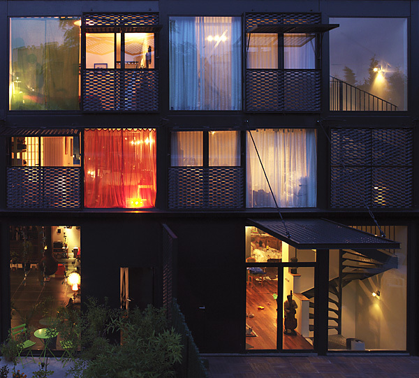 A private property developer wished to convert the former premises of a plumbing company into a group of five apartments whose highly flexible, «raw» spaces would reflect the industrial character of the existing building. We kept our intervention down to the minimum required to convert old workshops, offices and garages into saleable loft-like residential units, while preserving the memory of the premises as a place of work. We chose to maintain the entire metal superstructure, yet opened it up where necessary to create patios for better daylighting of the interiors. We mainly focused on the following tasks: the wet rooms design that would free up as much space as possible; the quality of natural light in the living spaces; exterior wall treatment, and the transformation of the parking and outdoor delivery areas into gardens. Old garage doors were replaced by a new frontage, while the windows on the west façade of the office block were substituted with mobile and fixed frames, their metal shutters fitting flush with the original metal structure to ensure optimum sun protection.
