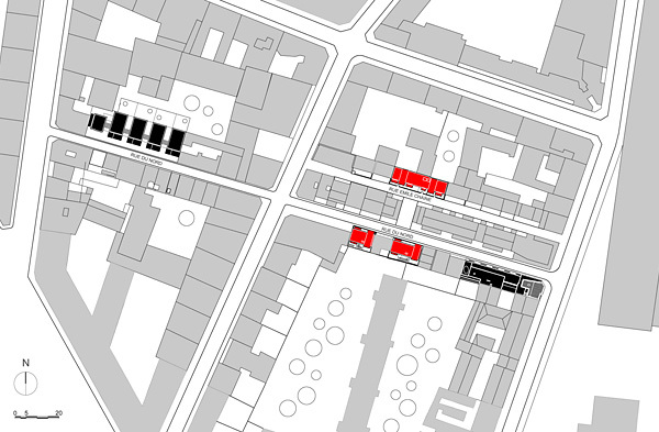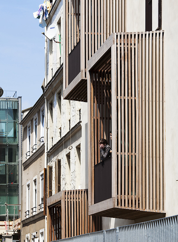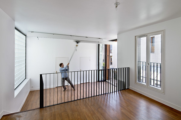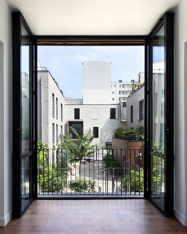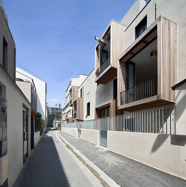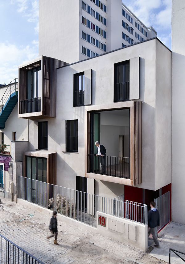 The project is part of a larger urban program aimed at regenerating underprivileged neighbourhoods in Northern Paris. Nine residences and three artists’ studios were built on three narrow plots. The project was shaped by our intention to stay in harmony with the neighbourhood’s scale and density while maximizing space and daylight available to future residents. Standards established for social housing severely restrict the size of apartments, therefore we decided to differentiate interior volumes, creating an added spatial value, which subsequently led to increased amounts of natural light.