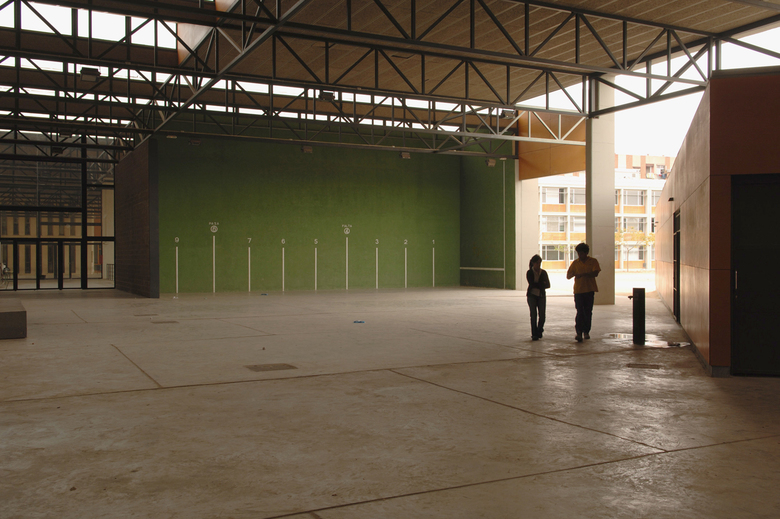 The main entrance to the centre and to the indoor sports hall can be found under a large porch. This shelter only serves the areas corresponding to the sports centre and the cafeteria. Games such as frontón, galotxeta and trinquete can be played around a covered square; a space for games when protection from the sun or rain is required.