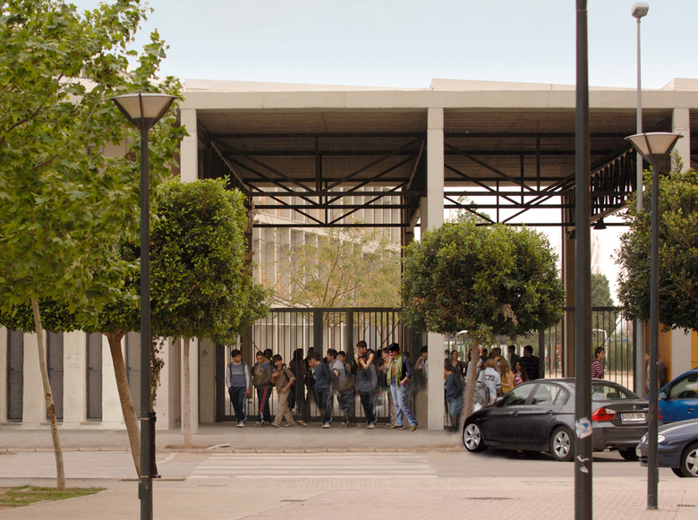 The main access to the site is located at the meeting-point of the two buildings forming the façade on to the Libertad plaza, where independent access to additional classrooms and school facilities are concentrated. The building that houses the administrative and management offices formalizes access to the building while symbolically and effectively controlling it.