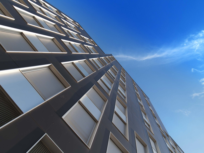 The proposed façades are tense, formed by three independent sheets and dry built with a ventilated façade technology. It has a single type carpentry that is structured based on a strict modular mesh of solid and hollow. To accentuate the apparent slenderness of the building three compositions are applied: windows are grouped vertically every two floors, staggered in height and irregularly eliminated in alternating columns in the upper section of the façade.