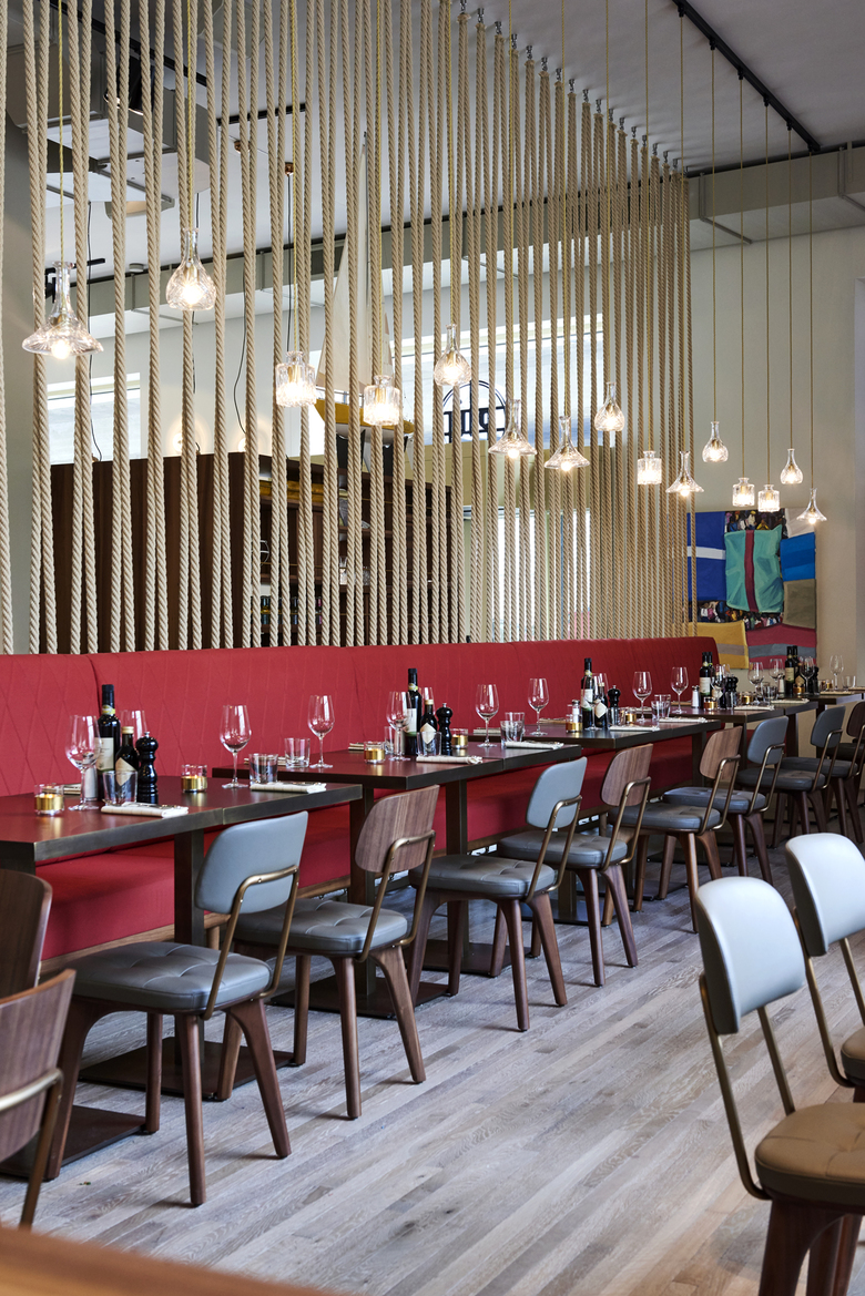 Design and implementation of a new Italian restaurant, Più II, adjacent to the Schiffbau in the uprising downtown neighborhood of Zurich West, for the swiss gastronomy family firm Bindella.