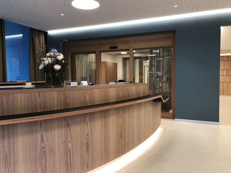 Concept and Consulting, in close cooperation with the client BFB Architechts Zurich, for the interior design of the refurbished north wing of the hospital.