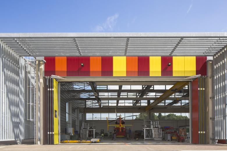 The restructuration and expansion of the helicopter base for civil security in Nimes Garons is a relatively complex project, under two major constraints. Firstly the fact that the work should be done without interrupting the activity of helicopter maintenance requiring extreme rigor in the areas of site partitioning and scheduling of work, then look at environmental issues classified BBC and Very High Energy Performance (TPHE). To this is added disparate entities built into the ground that need the introduction of a first coherent site.