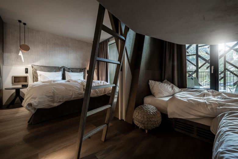 “As with the exteriors, the interior design was steered on the one hand by the aim of creating a playful, child-friendly atmosphere, and on the other hand by a reference to the natural environment surrounding the resort,” clarifies interior designer Barbara Runggatscher.
