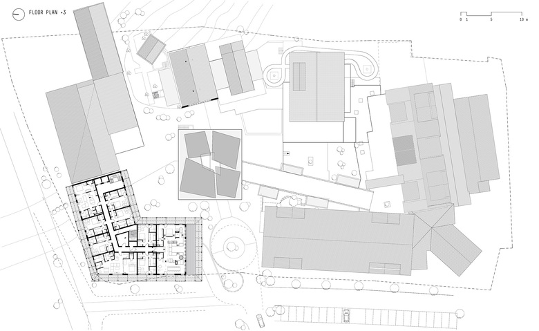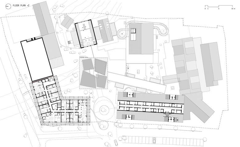 The Bavarian forest forms the narrative frame for the entire resort, it works as a script. The architectural shapes of the existing farms act like a protective wall around the newly conceived ensemble of the project. noa* managed to add a contemporary momentum, while still being very respectful: not a single volume is higher than the surrounding trees.