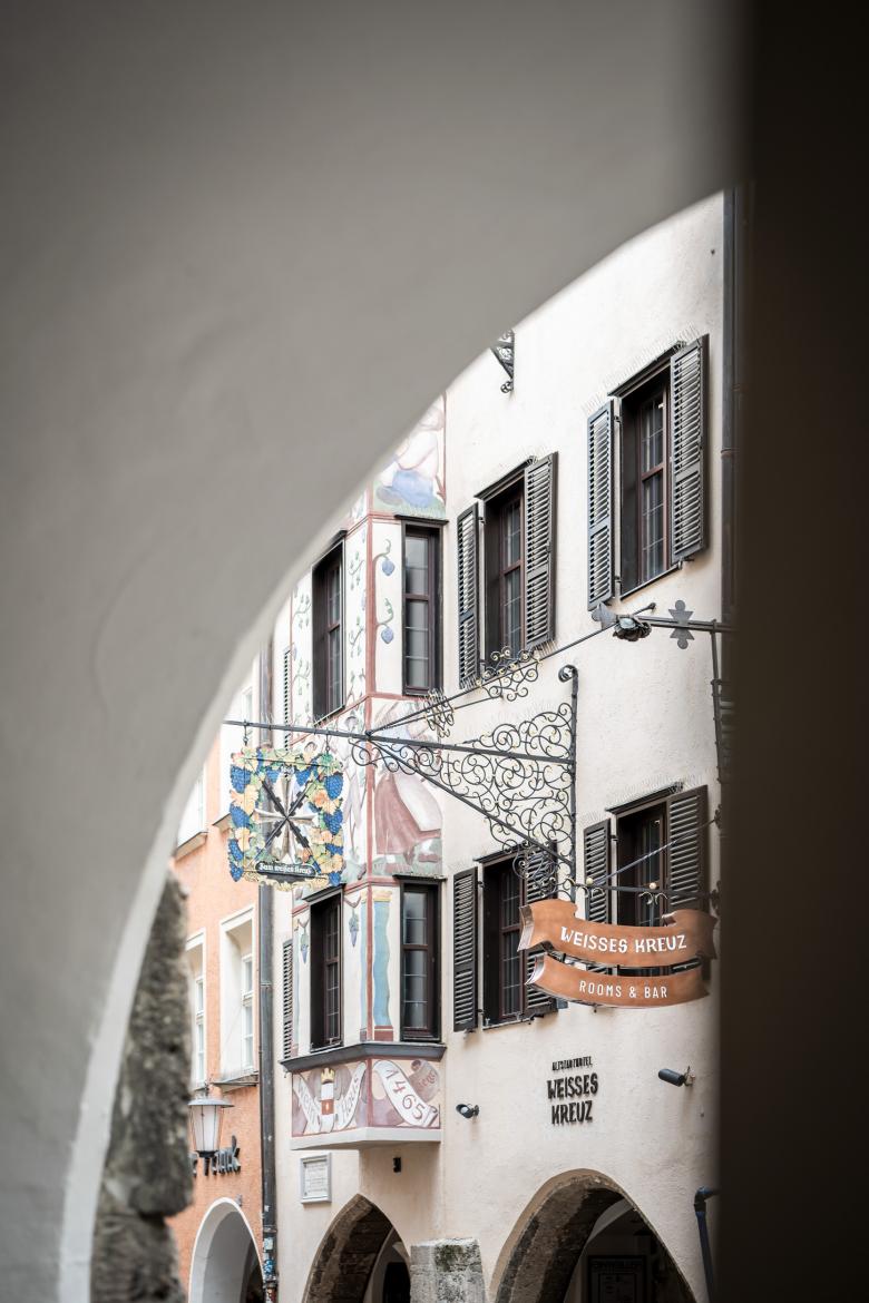No right angles in sight here: the venerable house in Herzog-Friedrich-Straße, which dates from the 1460s, is a building in Innsbruck's historic streets whose architecture is inflected with architectural elements from a wide range of historical eras, having undergone constant transformation. Yet the distinct features of each period coalesce in timeless fashion to form a symbiosis of urbanism. In keeping with the rhythm of change over the centuries, the Hotel Weisses Kreuz fits into this pattern, providing a uniquely appealing architectural challenge for noa*.