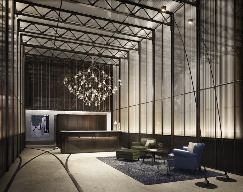 The transformation of DUMBO’s 1910 Landmark protected “daylight factory” into high end lofts is done strategically, where incapacitated elements are replaced with new features that complement the industrial character of the building’s identity. The exterior façade is restored and all existing interior floors were removed and reintroduced with structural modularity. A central courtyard is carved open to bring daylight into a shared garden, while an existing roof skylight structure is re-appropriated as a minimally visible glass penthouse with large terraces and extensive amenities.