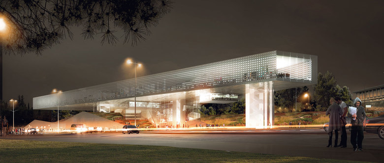Through the form of a floating monolith that visually connects to the foundations of Parliament, the library underscores the idea that education and learning are the bedrock of democracy. The pure form of the monolith contains the library’s most essential function—the reading room. This volume rests on a mountain-like base that extends the surrounding topography. Invoking the Israeli tradition of building, the mountain is excavated to reveal a dynamic hub of programming within the cavern.