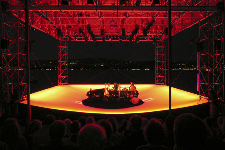 Especially for the stage in the lake of Zurich, which is open during the two weeks of the Theaterspektakel, Minimal-Groove-Componist Nik Bärtsch has together with his musicians from MOBILE and OOS composed the live-musical stage design "SEE".
