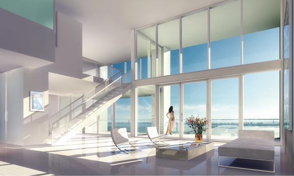 The constant play of light and shadow defies gravity-Element appears to float weightlessly above the cerulean waters of Sapphire Bay. The lush greenery and bright tropical flowers of the designer gardens at its base become an integral part of the structure itself in the double height terrace that wraps the central core of the tower on the fourth and fifth levels-a fantasy of Sky Gardens, pavilions and limpid pools that completes the seamless integration of exterior and interior volumes.