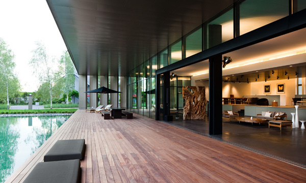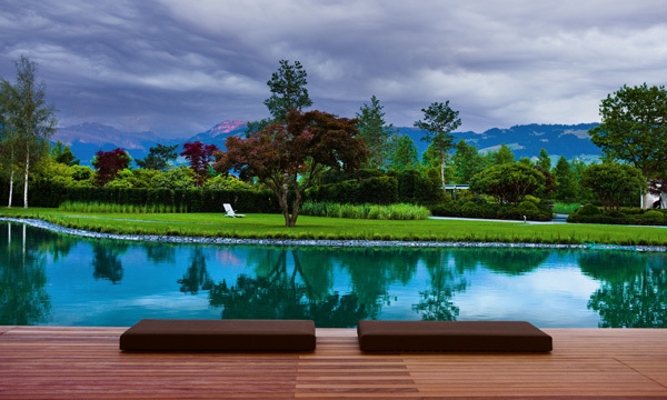 The project, located at the shores of the Obersee in Switzerland, will house the headquarters of the internationally recognized landscape architecture firm Enea Garden Design. It emerges from the site as a wooden volume, discrete and elegant, and blends with the landscape as it responds to the natural environment, boundary lines and zoning conditions.