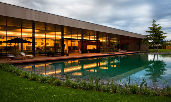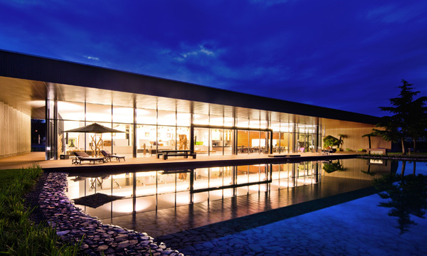 The building derives its form from programmatical and site conditions – on one hand, the flow of the processes and program required in the program and their architectural resolution generate a long and low building broken where access points are needed, on the other hand, natural site conditions such as illumination and wind, the service access and the necessity of differentiating front and back - entrance and service areas - make the long mass the appropriate response. Its architectural simplicity is reinforced by the necessity of architectural sobriety and respect towards the elements and nature at the site.