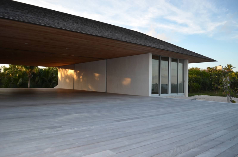 Located five hundred feet off one of the islands main roadways you meander along a sand driveway overflowing with vegetation and come upon a simple pavilion. The central space of the house is essentially an open breezeway, allowing visual and pedestrian connectivity across the site. Within this pavilion space there is the living and dining areas that open onto verandahs well protected from the elements by the deep overhangs of the gabled roof. The rest of the living spaces are simply arranged around the central space. To the left are two guest suites with private bathrooms; while to the right are the kitchen area and the master suite. Materials have been selected for their distinctive sincerity, environmental sensitivity, and a resonance with the vernacular.
