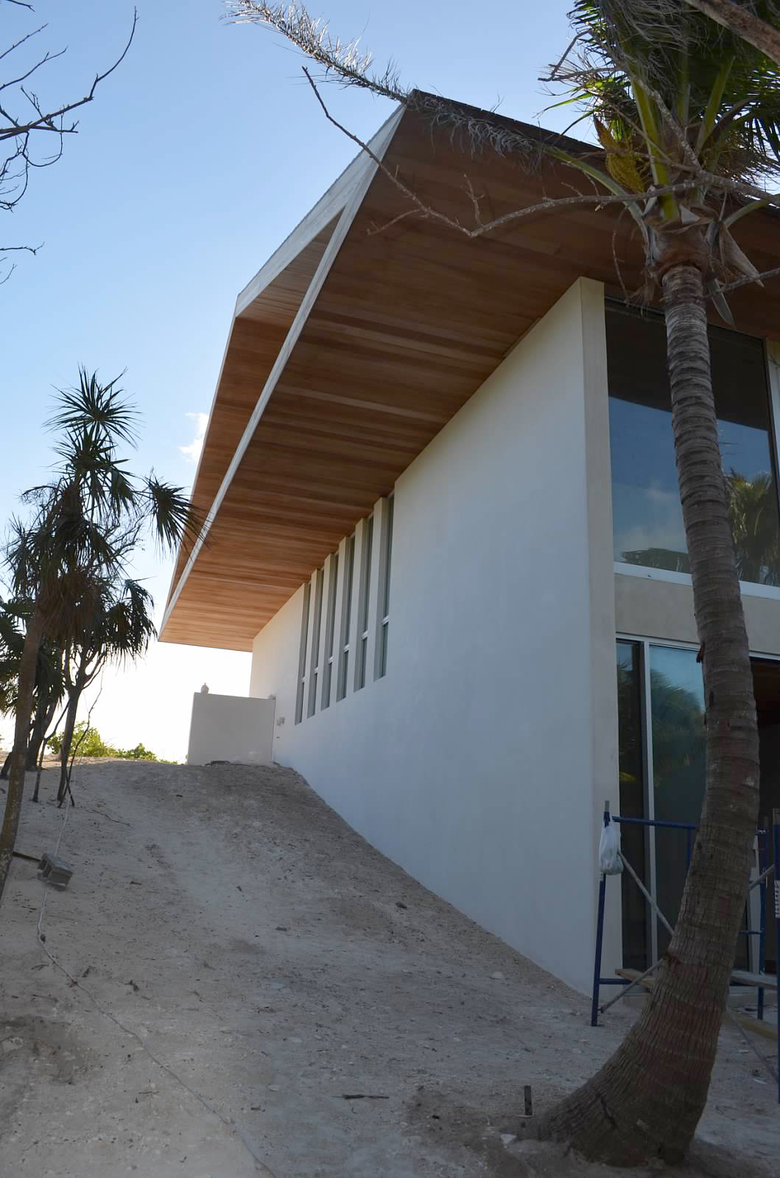 Harbour Island is a relaxed yet luxurious getaway perched in the surreal cerulean waters of the Atlantic edge of the Great Bahama bank. In this earnest and timeless place, the architecture for this private residence is conceived as simultaneously powerful, yet comfortable; primitive, yet innovative; casual, yet elegant; raw, yet refined. The result is a sensual and sensitive experience, reduced to its essence through the use of elemental forms and sincere materiality and detailing. The most dramatic view of the ocean is obtained towards the crest of the dunes, the location of this modest home.