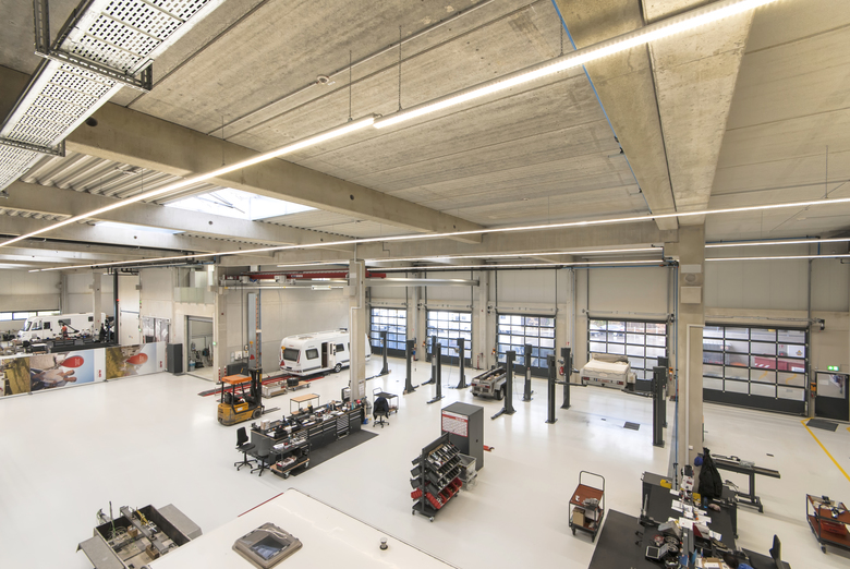 Die Technologiebereiche aller drei Unternehmenssparten des ALKO Konzerns werden aus Synergiegründen in einem neuen Zentrum zusammengeführt. In mehreren Bauabschnitten und bei laufendem Betrieb, werden die alten Produktionshallen sukzessive durch den Neubau ersetzt. Über den neuen Versuchshallen liegt ein zweigeschossiger Büroriegel für Technik und Entwicklung.