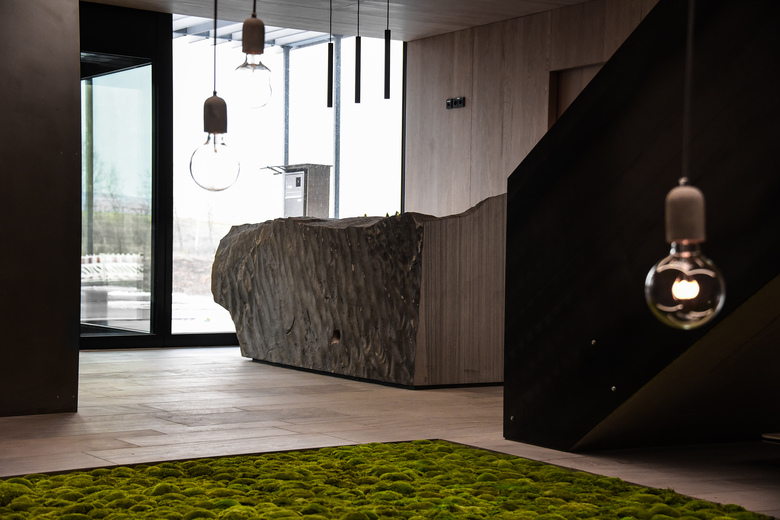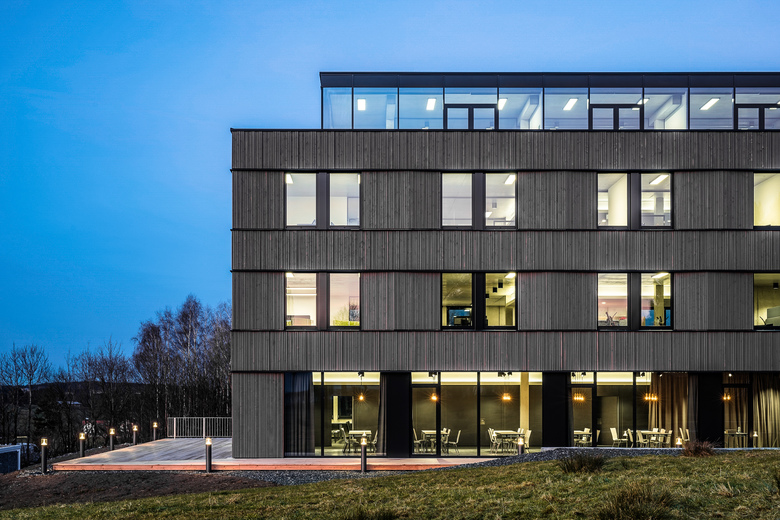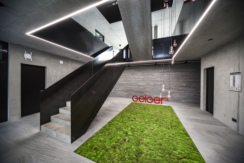 Gebäude für Verwaltung, Schulung und Konferenz für 150 Mitarbeiter des erfolgreichen Oberstdorfer Familienunternehmens. Landschaftsgerechte Fassade aus heimischen Bruchsteinen und naturbelassender Holzfassade, eingebettet in die malerische Topographie der Allgäuer Berglandschaft.