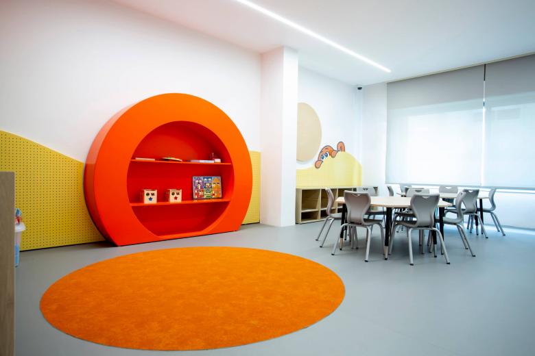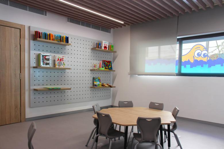 Across both indoor and outdoor areas, the design prioritizes continuity and flow, encouraging movement, exploration, and comfort. The result is a cohesive educational environment that balances strong visual character with everyday functionality, supporting both structured learning and playful discovery.