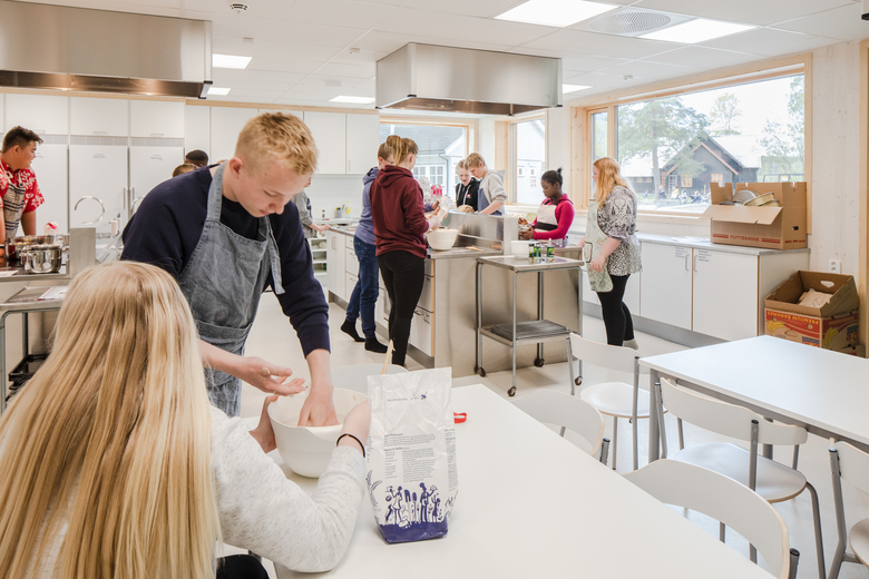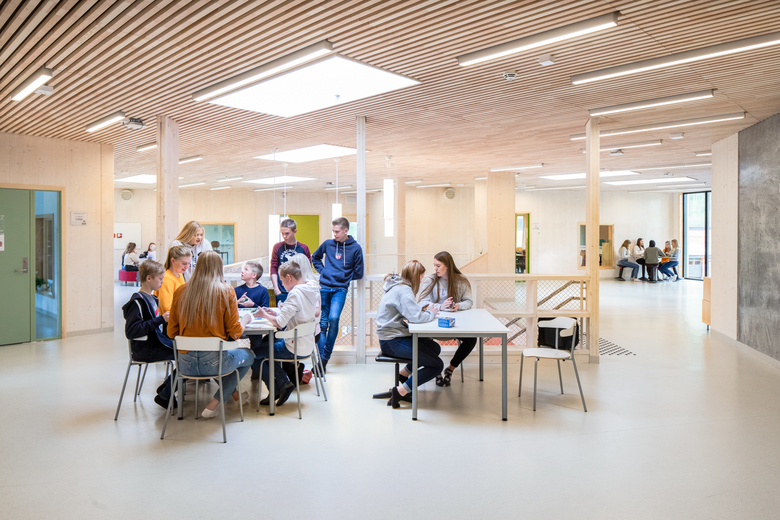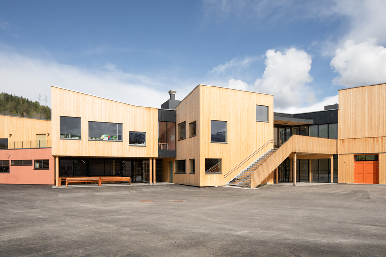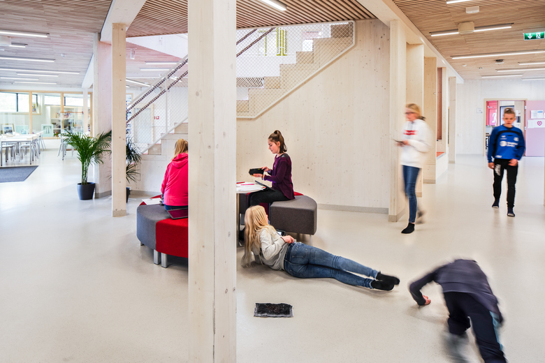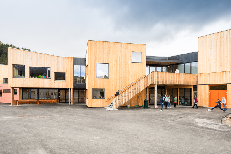 Eine kleine Gemeinde in der Region Telemark, im Süden Norwegens. Eine alte sanierungsbedürftige Schule mit althergebrachter Typologie: Flure, Klassenzimmer, Frontalunterricht. Anstatt diese Schule zu renovieren, entschied man sich in der Gemeinde Sauland für einen Neubau, der den Anforderungen des 21.Jahrhunderts entspricht. Freies Lernen und projektorientierter Unterricht stehen dabei im Vordergrund, Frontalunterricht wird auf das sinnvolle Maß beschränkt. Es war für das Dorf das größte Neubauprojekt seit 20 Jahren.