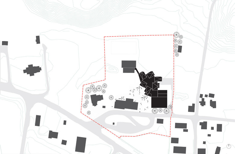 Das Dorf Sauland und die umgebende hügelige Landschaft sind durch bäuerliche Gehöfte gekennzeichnet. Diese örtliche Typologie prägt auch den Charakter und die Identität der Schule. Die neue Sekundarschule tritt nicht als Sonderelement in Erscheinung, sondern als fast zufällig erscheinende Gruppierung von Häusern. Die Größe der zweigeschossig übereinanderliegenden Unterrichtsräume entspricht den Holzhäusern in der Umgebung. Die Begriffe Vorder- und Rückseite verlieren an Bedeutung, das Gebäude erscheint von jeder Richtung gleichwertig – freundlich, zugänglich, offen.