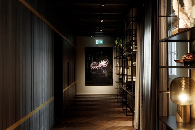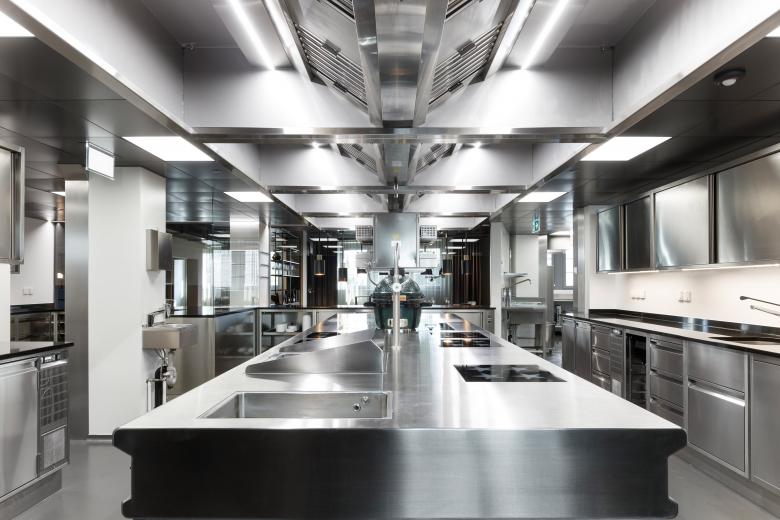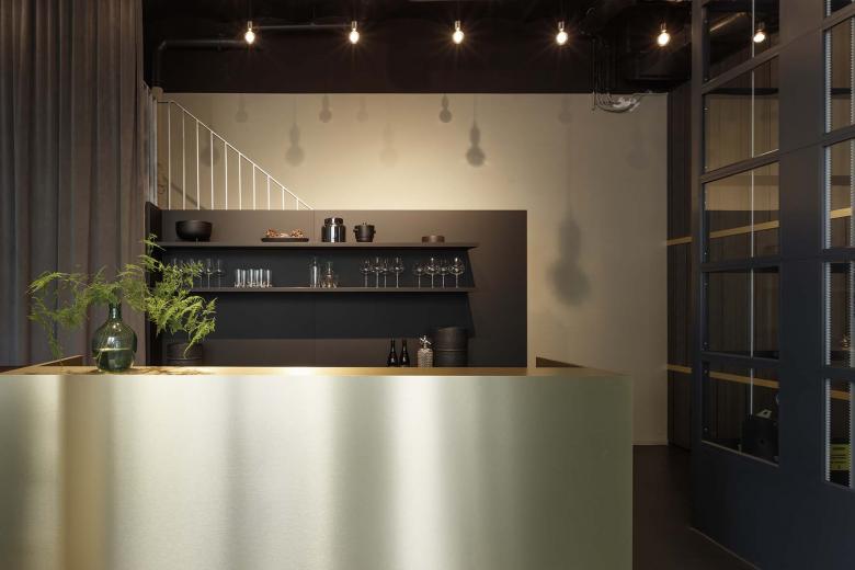 Einst wurden in der alten Spenglerei auf dem Hero-Gelände in Lenzburg Konservendosen produziert. Nun entstand in den geschichtsträchtigen Produktionsräumen ein Restaurant auf Sterne-Niveau: das „Skin´s“. Den gestalterischen Rahmen für die kredenzten Köstlichkeiten bildet ein Interieur, das unübersehbar eine Brücke zu Skinmed schlägt. Auch hier dominieren dunkle Brauntöne, wertige Materialien und fein ausgearbeitete Details wie die Bänder in Messingoptik, die in die Wand eingelassen wurden. Grossformatige Foodfotografien tragen ebenso zum atmosphärischen Ambiente bei. Die Räumlichkeiten strahlen behagliche Eleganz aus, gleichzeitig konnte aber auch der industrielle Charme des alten Gebäudes bewahrt werden. So blieb beispielsweise die historische Kappendecke sichtbar. Insgesamt bietet das Restaurant 36 Sitzplätze, die sich auf vier unterschiedliche Ebenen verteilen. Der Küchen- sowie der Patisseriebereich ist zum Gastraum offen und lädt ein, einen Blick auf die Präzisionsarbeit der Köche zu werfen.