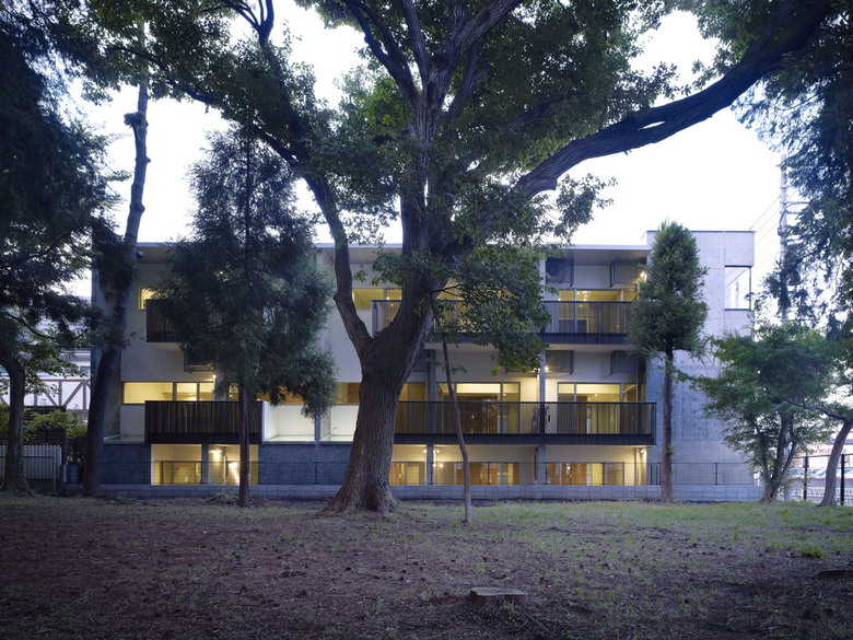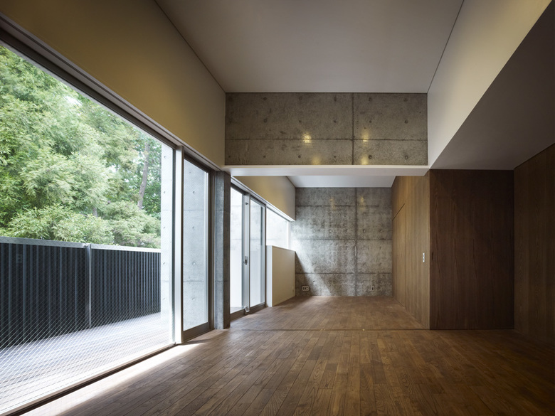 While the plan configuration is quite simple and orthodox, the cross-sectional structure is a bit more complex. Within the volume of the legally determined height, three types of dwellings with different cross-sections are stacked vertically in a puzzle-like manner. The bottom floor is a maisonette type with a basement floor and a first floor, the top floor is a skip-floor type with a loft, and in between is a flat type with an expansive plan. Each unit offers various views of the adjacent greenery. The name of the building is "BALCONE" because it resembles the relationship between the stage and the bleachers of a theater. The company decided to use the name "Toyama" in the name of the city. It is an apartment complex that serves as a viewing platform for the attractive green space on the stage.