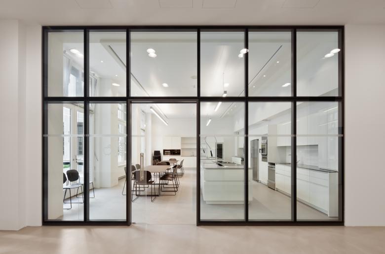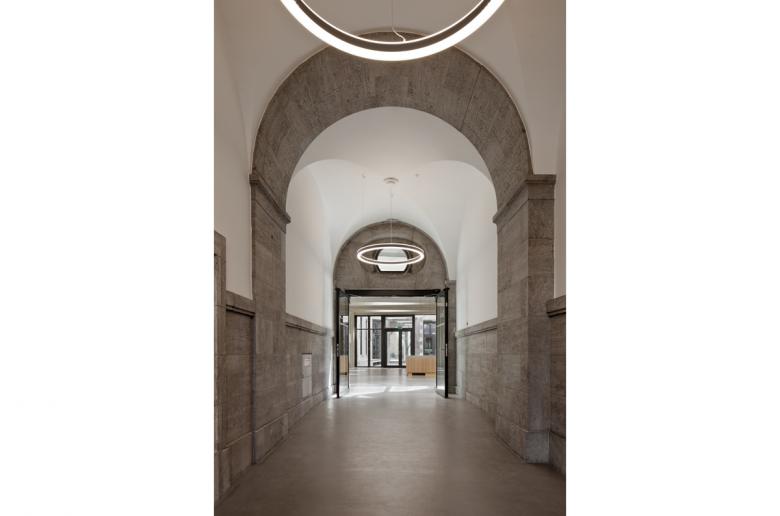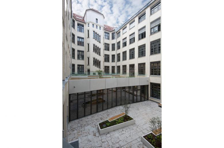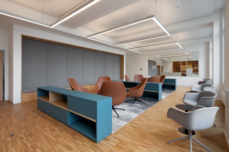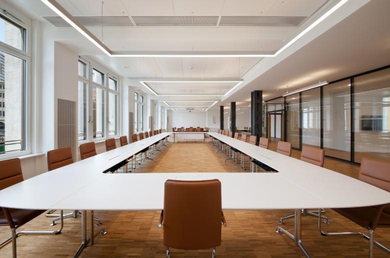 In the course of restructuring the Barmer GEK, BFA has made it’s Berlin administration building fit for the future. The listed building from 1907 has been freshly designed to have an open structure across all floors. A newly built, bright pavilion in the inner courtyard prevails as the central reception area, while also connecting the surrounding parts of the building and asserting itself as the visitor-friendly pillar of the ensemble. The ground floor is converted into a multi-use, versatile space, whereas the first floor is transformed with it’s modern conference and training rooms to a welcomed meeting point for employees. The structural opening across all floors allows an unobstructed view throughout the building. Thus translating the theme of transparency into architecture.