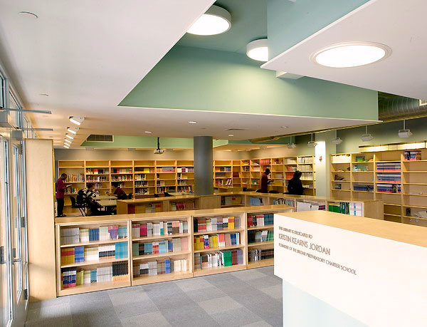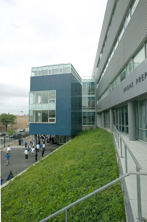 The challenge was to create a low-cost but college-like campus within one block in the South Bronx which would foster the educational ideals of the school for 800 students, their parents and teachers. We turned the steep site, which at first seemed almost unbuildable, into an asset by creating a series of linear forms that step up the slope, each one identified as a separate "academy." This avoided the box-like institutional cavern of most school buildings and made the scale student-friendly. The two middle schools, upper school, and a multi-use "gymnatorium" for both school and community activities have their own distinctive architectural form. Like the mission of the school, the self-contained and serious but welcoming spaces represent a retreat from the problems of the inner city as well as the hopes and opportunities that education brings.