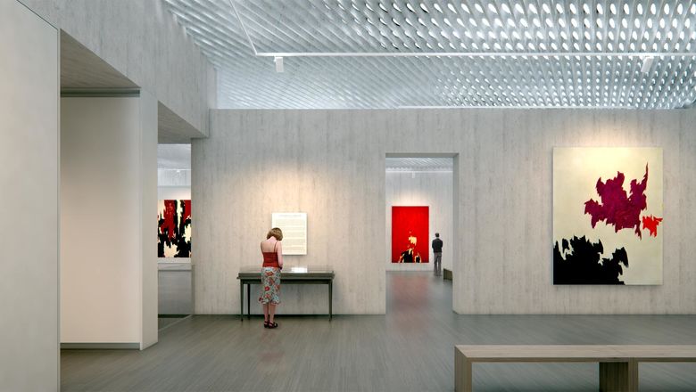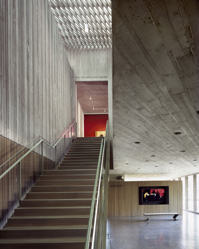The 28,000sf museum mediates this setting with two distinct acts of architecture. The first prepares the site by creating a dense grove of deciduous trees - a place of refuge from the intense light of central Colorado. The second act of architecture looks to the earth. The Museum is conceived as a solid, a continuous form that is opened up by natural light. Walls of textured concrete form the primary building envelope, interior walls and structural system. The entrance, deeply recessed beneath the cantilevered walls, holds the visitor to the earth. The lower level houses the education, archive and storage spaces. In the upper level galleries, the visitor moves through a series of nine distinct volumes where they encounter the work of Clyfford Still. Overhead, an open lattice of concrete unites the body of the building and offers illumination and connection to the atmosphere of the city. The galleries respond to the evolving character of Still’s art, changing scale and proportion, while varying the intensity of light.