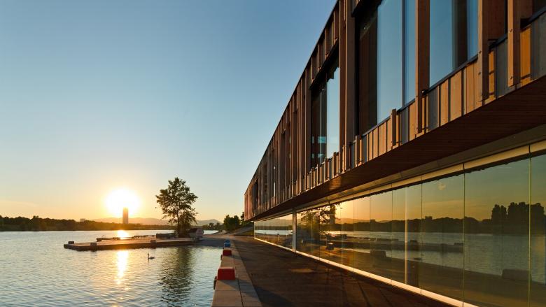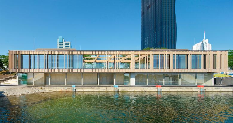 To achieve this, the currently only rudimentary existing diagonal axis is clearly elaborated in order to directly link Donaucity and water. The resulting interface between the urban axis and the waterfront provides the stage for a new landmark for this area. A study for the overall concept of the Copa Cagrana preceded this realization.