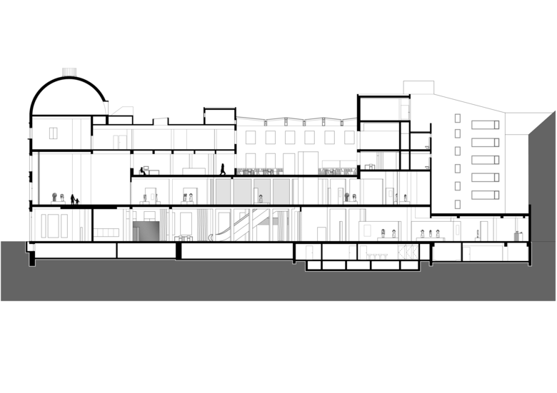 Essentially, this proposal is classic-conservative. Architecture as a mere formalistic discipline fades to become a medium between the urban and museal experience. Architecture itself is no longer protagonist. The collection, the Academy and the city can reclaim the space they deserve.