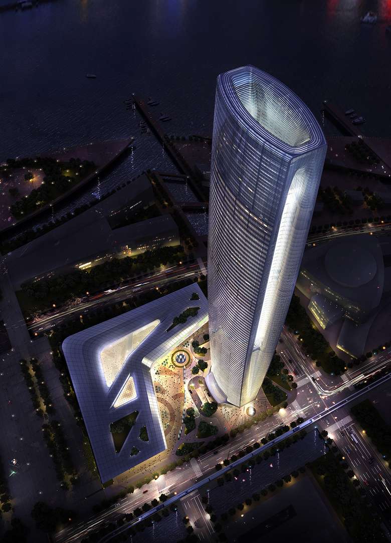 Like sculpting a high-performance automobile, digital aerodynamic modeling was critical to shaping this 1,175-foot super-tall tower. Acting as the “lung” of the building, the tower’s atrium is defined by a 30-story-tall operable window, which invites cool air flow during summer months and floods the interior spaces with natural light. The atrium has also been designed to facilitate mixed mode ventilation in the lobbies and public spaces, providing a fresh air supply source for the building and its inhabitants. A series of high-efficiency measures employed on the tower are predicted to achieve a 60% savings in energy consumption as compared to a conventional American high-rise.