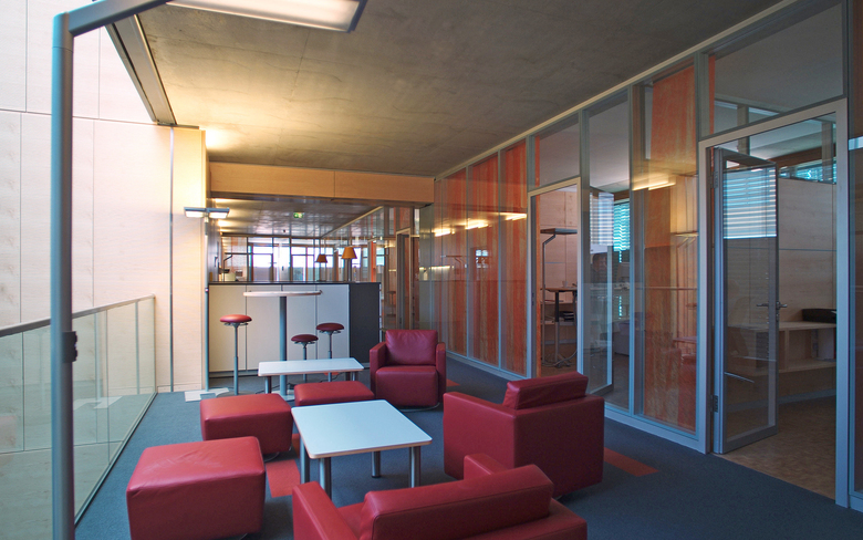 Das Neubaugebäude stellt im Erdgeschoss Sonderflächen zur Verfügung (teilbarer zweigeschossiger Veranstaltungssaal, Besprechungsräume, Cafeteria), die auch zu externen Nutzungen oder Schulungszwecken freigegeben werden können und mit entsprechender Konferenz- und Multimediatechnik ausgestattet sind.