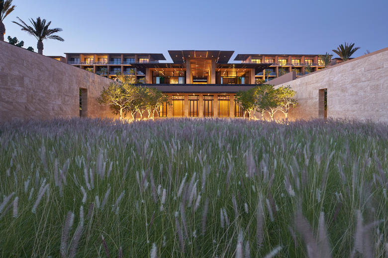 The design of the JW Marriott Los Cabos Resort seamlessly blends architecture and art with the site’s powerful desert landscape and an endless panorama of the Pacific Ocean. Though separated from the water by a 35-foot-tall dune, the resort creates an immediate connection from entry to ocean through a horizon-framing main arrival hall and intuitive, adventure-evoking pathways throughout the resort.