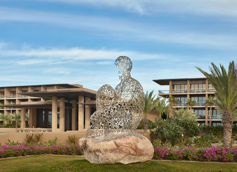 Specially commissioned artworks from Mexican artists including Jaume Plensa, Jorge Yázpik, and Sam Falls are woven throughout the interior and exterior spaces of the resort, as well as individual guest rooms.
