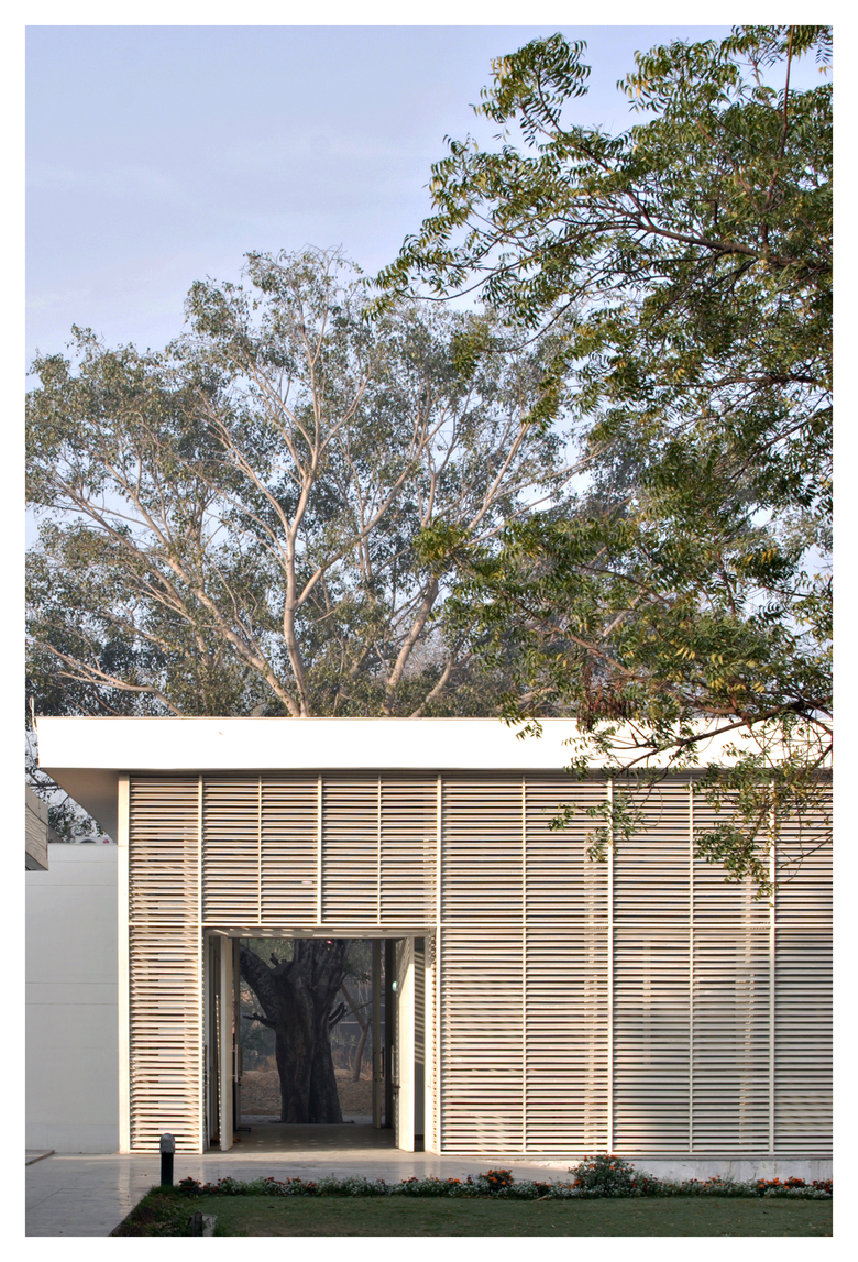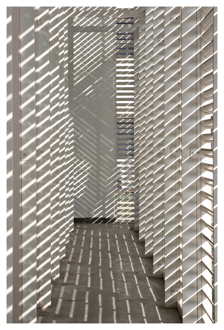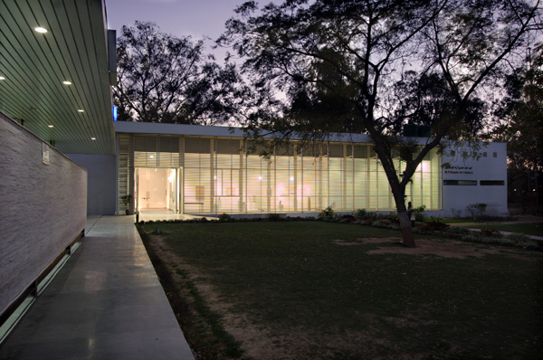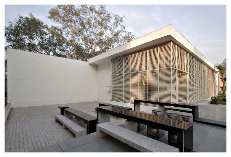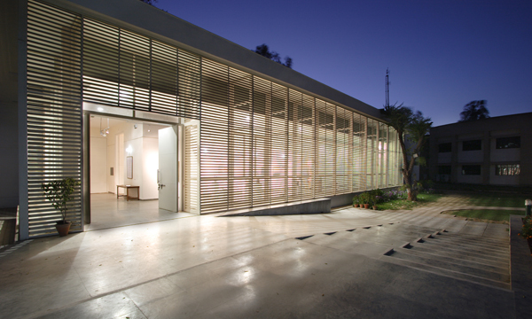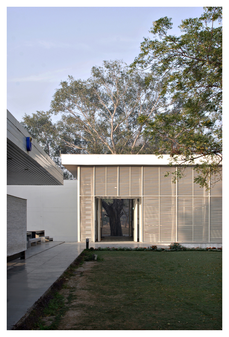 The architects chose white marble in the canteen and white metal louvers in the art gallery to express this contemporary identity.  The art gallery has become a community space for gathering alternative expressions of culture and identity.  This role signaled the canteen and the art gallery as iconic models of architectural expression in contemporary Indian academic institutions.