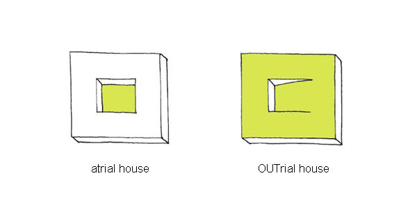 This procedure turned the roof into an atrium, as the only way to reach it was through the interior of the house. As opposed, however, to a typical atrium, the newly-created space has all the advantages of an outer garden while remaining a safe, internal zone within the building. This way, a new type of house was created, and its designation - outrial - is to convey the idea of an atypical atrium which is part of both the interior and the exterior of the building.