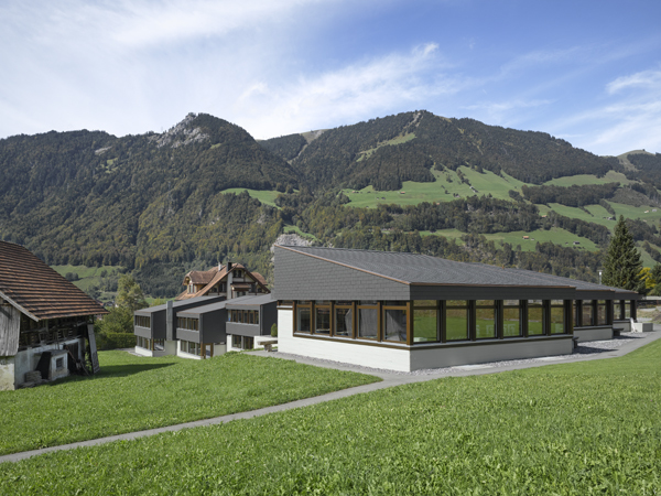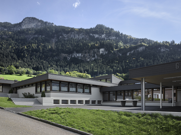 Das 1966 von Paul Dillier erbaute Schulhaus verbindet subtile Eingliederung in Dorfbild und Topografie mit kindgerechter Massstäblichkeit. Nicht nur aus familiären Gründen wurde es daher mit nahezu denkmalpflegerischem Zugang „restauriert“. Die Renovation erfolgte während des Schulbetriebes, sodass die Arbeiten in zwei Phasen, „Pullover“ (Energie) und „Pellerine“ (Fassade), gestaffelt werden mussten.