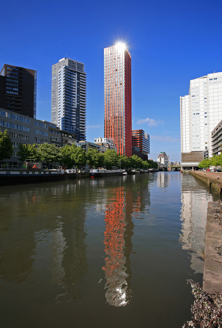The Red Apple is a residential high-rise complex with shops, cafés and restaurants and business space that towers skyward at the head of Rotterdam’s Wijnhaven Island. The Wijnhaven Island forms a link between Rotterdam city centre and the River Maas. It is being redeveloped using a dynamic transformation model, which provides development guidelines that ensure a balance between new and existing construction as well as the preservation of fine views and sufficient incidence of daylight throughout the area. The Red Apple building stands in a visually prominent position: at the tip of the Wijnhaven Island, with water on three sides and views across the river and the ‘Old Harbour’.