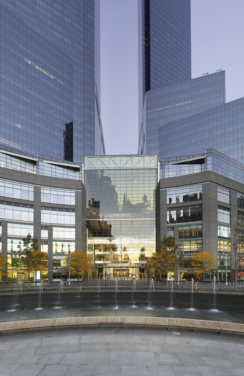 Because of its extraordinarily complex program, the Time Warner Center, perhaps to a greater degree than any other modern American building, exemplifies the concept of a city within a building, rather than a building within a city. In addition to service, transit, and parking infrastructure, the mixed-use project encompasses the corporate headquarters of Time Warner, including production facilities for CNN and Time Warner media outlets; the Shops at Columbus Circle, a retail and restaurant complex; Jazz at Lincoln Center, a multi-hall performance and education facility; the five-star Mandarin Oriental Hotel; a large health club; and the One Central Park luxury condominiums.