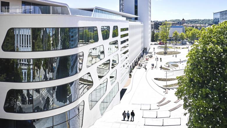 In addition, the design of all public interior areas in the five enclosed buildings with lobbies, atriums and modern workspaces is also part of the complex project.