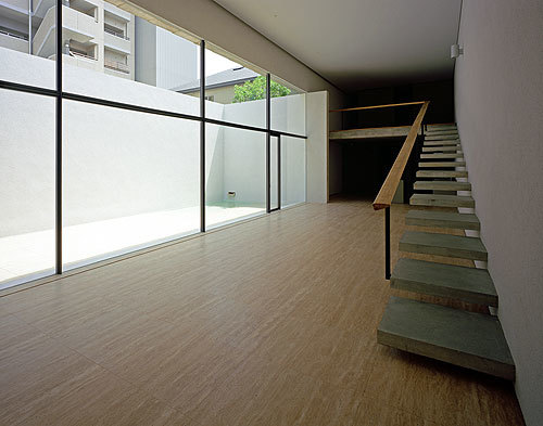 The site is long and narrow, running fifty meters north and south at four to five meters in width, switching back twice. Located in the center of a prominent city that serves as its prefectural capital, it is densely surrounded by mid- to high-rise reinforced concrete buildings as part of a fire prevention zone. The site presented itself as a valley amidst the mountainous residential structures surrounding it. What we were attempting was to regard the existing urban features as a landscape in which, by way of architecture that enhances the topological characteristics of the area, a qualitatively more optimal environment could be realized.