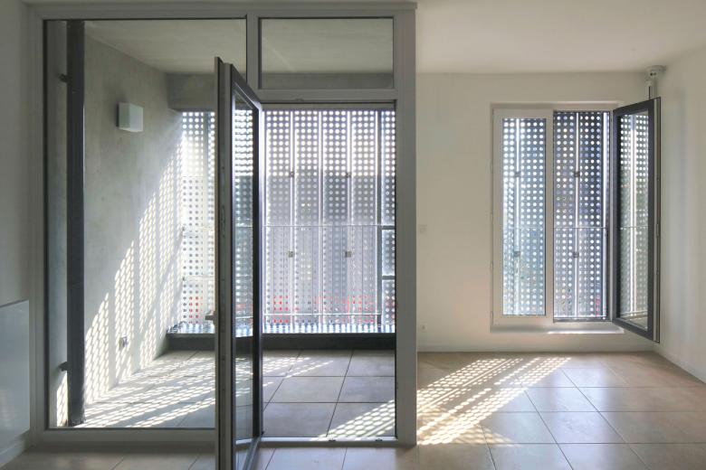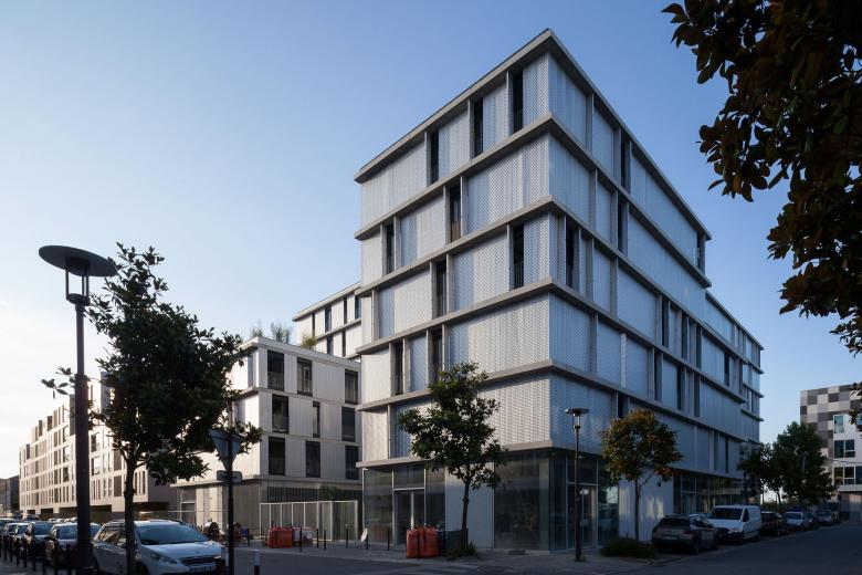 The building is conceived as a discrete machine to live in : it is a social machine thanks to its typological diversity and the creation of shared spaces like the collective terrace, the fitness and the concierge ; it is a machine to live in thanks to the creation of generous and atypical spaces with 2,70 meters-high ceilings for all flats ; it is a climatic machine with the implementation of an external insulation and crossed ventilation for the multi-oriented flats, and with the creation of an inner courtyard garden and an ecosystem on the roofs ; it is a structural machine with its modular facade skin ; it is an economical machine thanks to its rational and pragmatic approach... All those technical devices shape a whole project and are discreetly integrated into the architecture.